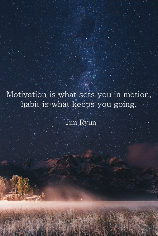 "Motivation is what sets you in motion, habit is what keeps you going."